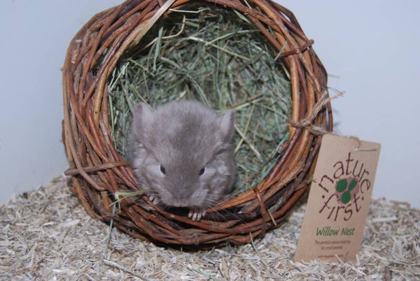 Wilgennest, gevuld met hooi en een Hartje van Goudsbloem.