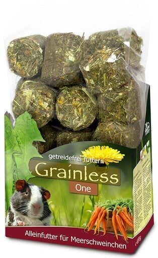 Bestaat uit: Grassen van natuurlijke bergweide, erwtenvlokken, tuinboonvlokken, wortelen 5%, peterselie, lijnzaad, pastinaak, haverkruid, pepermunt, goudsbloem, bieten, venkelzaad, melisse, berkenbladeren, frambozenbladeren, paardenbloem, zwart komijnzaad, speltkruid, kamille, komkommers, courgette